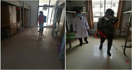 2月25日起,食堂、学生宿舍、教室、办公室、实验室、图书馆、厕所、各楼栋供水池等人员密集区、重点场所、重点区域开学前消毒全面展开。