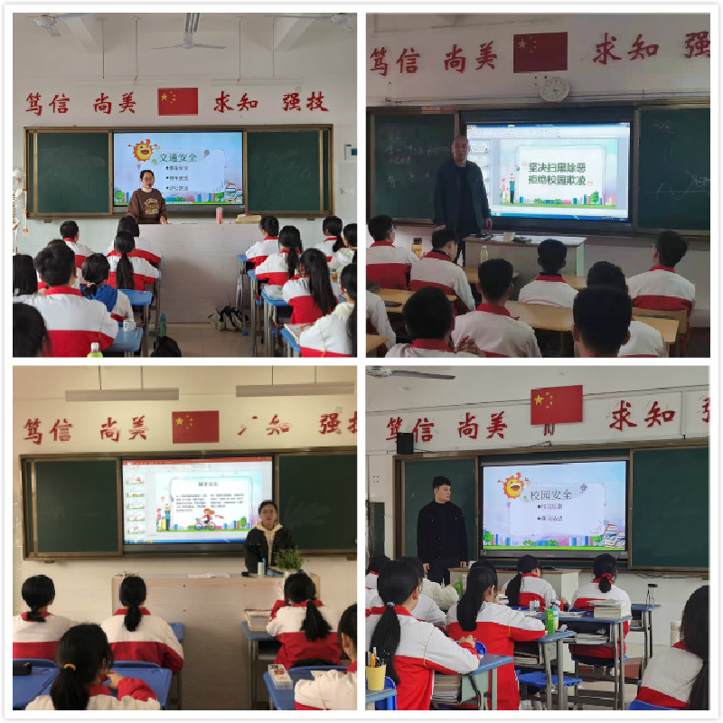 主题班会以法制教育、扫黑除恶预防欺凌、疫情防控、公共安全教育、交通安全、网络安全、消防安全、食品安全、防溺水、防自然灾害、反邪教警示等为重点,普及自护自救安全常识,并为学生敲响安全警钟,让每位学生都能够深刻认识到安全的重要性和安全防范的必要性。线上利用“全员智慧德育平台”,开展“三明农校开学安全教育手册”的微课题;线下发放《校园安全知识手册》、《防灾减灾知识宝典》,让安全知识深入每一位学生心中。