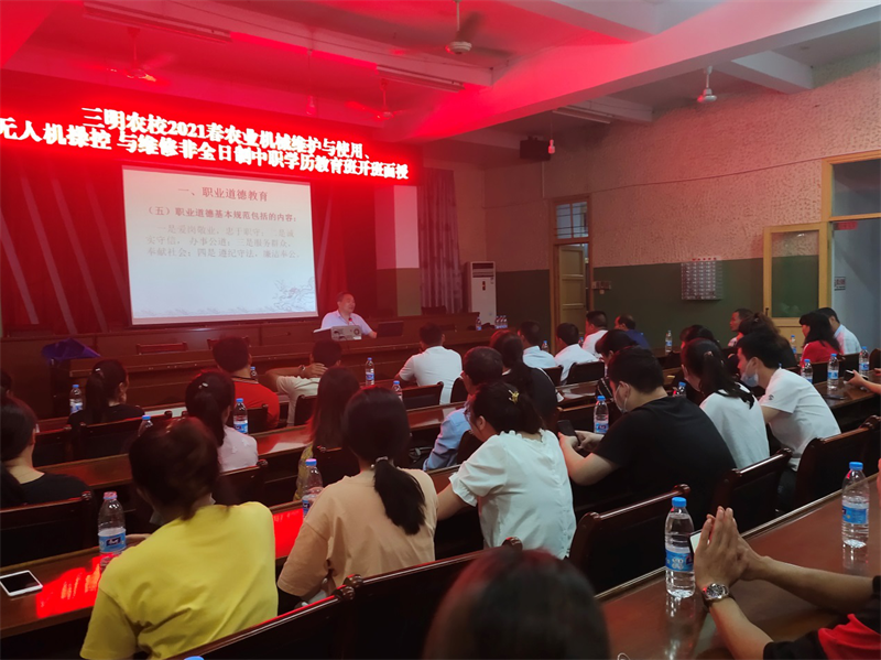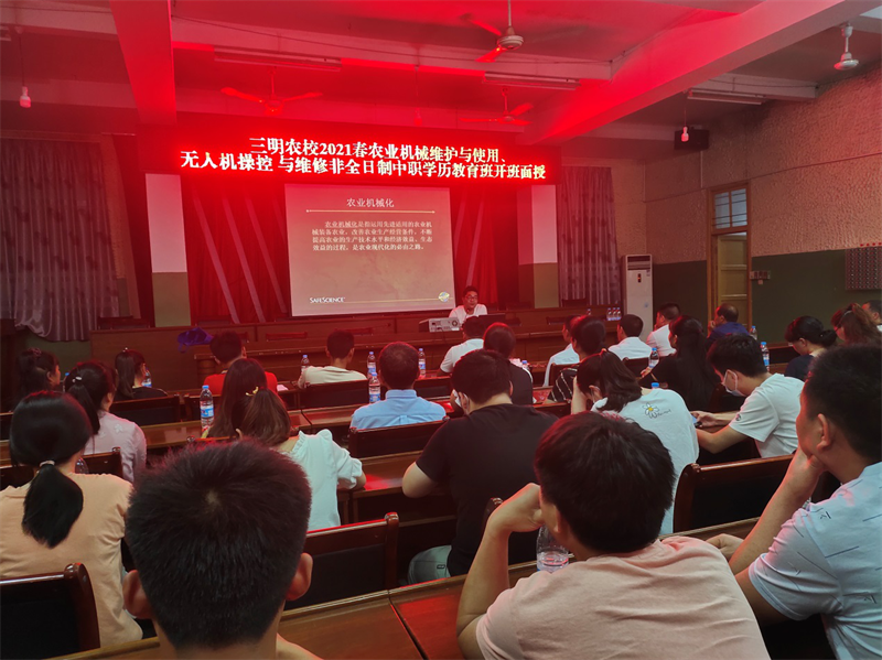 2021年5月25日,在尤溪县中仙乡党委、政府的大力支持下,三明农校2021春农业机械使用与维护、无人机操控与维护非全日制中职学历教育班开班面授活动在中仙乡人民政府会议室顺利举行。