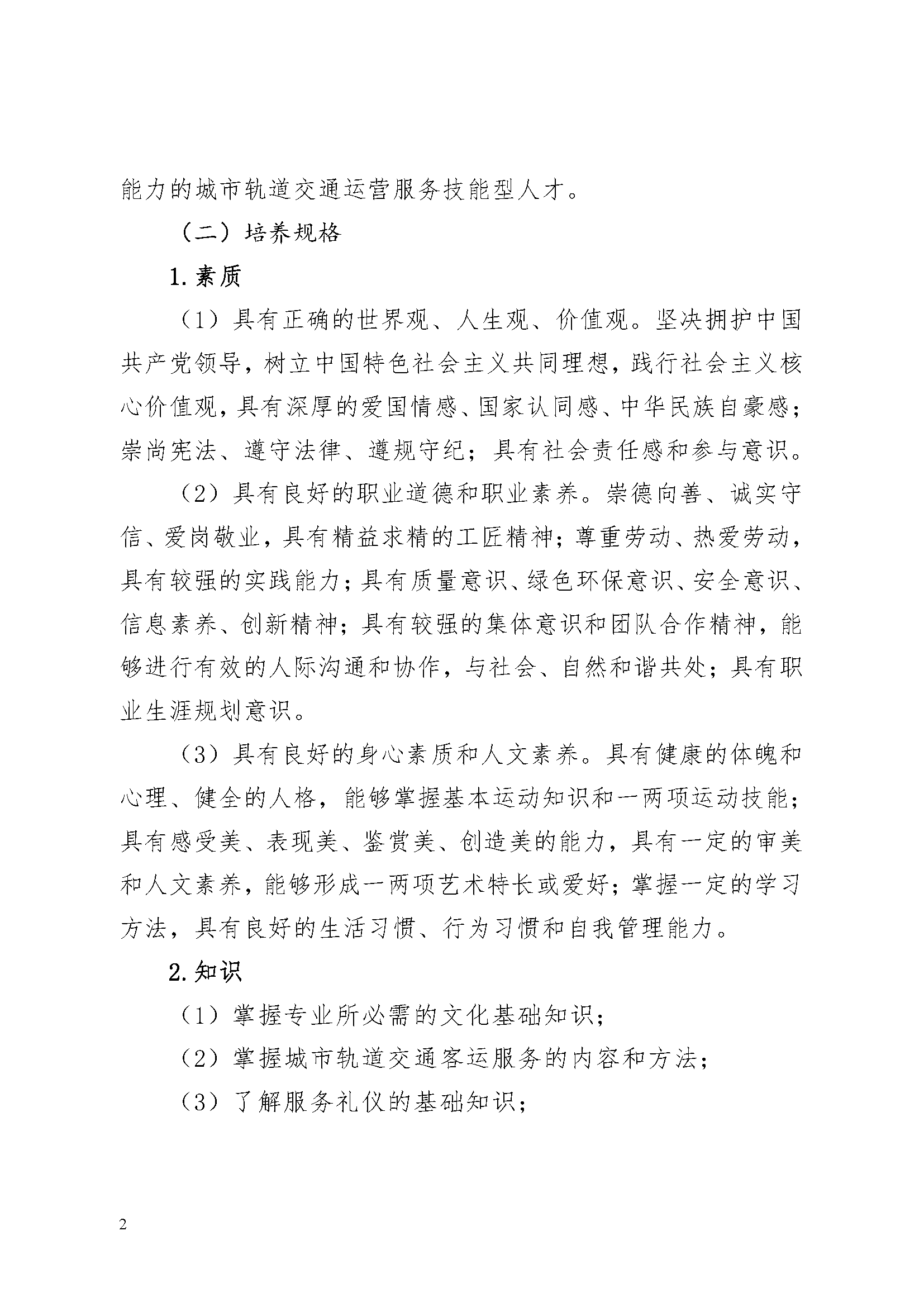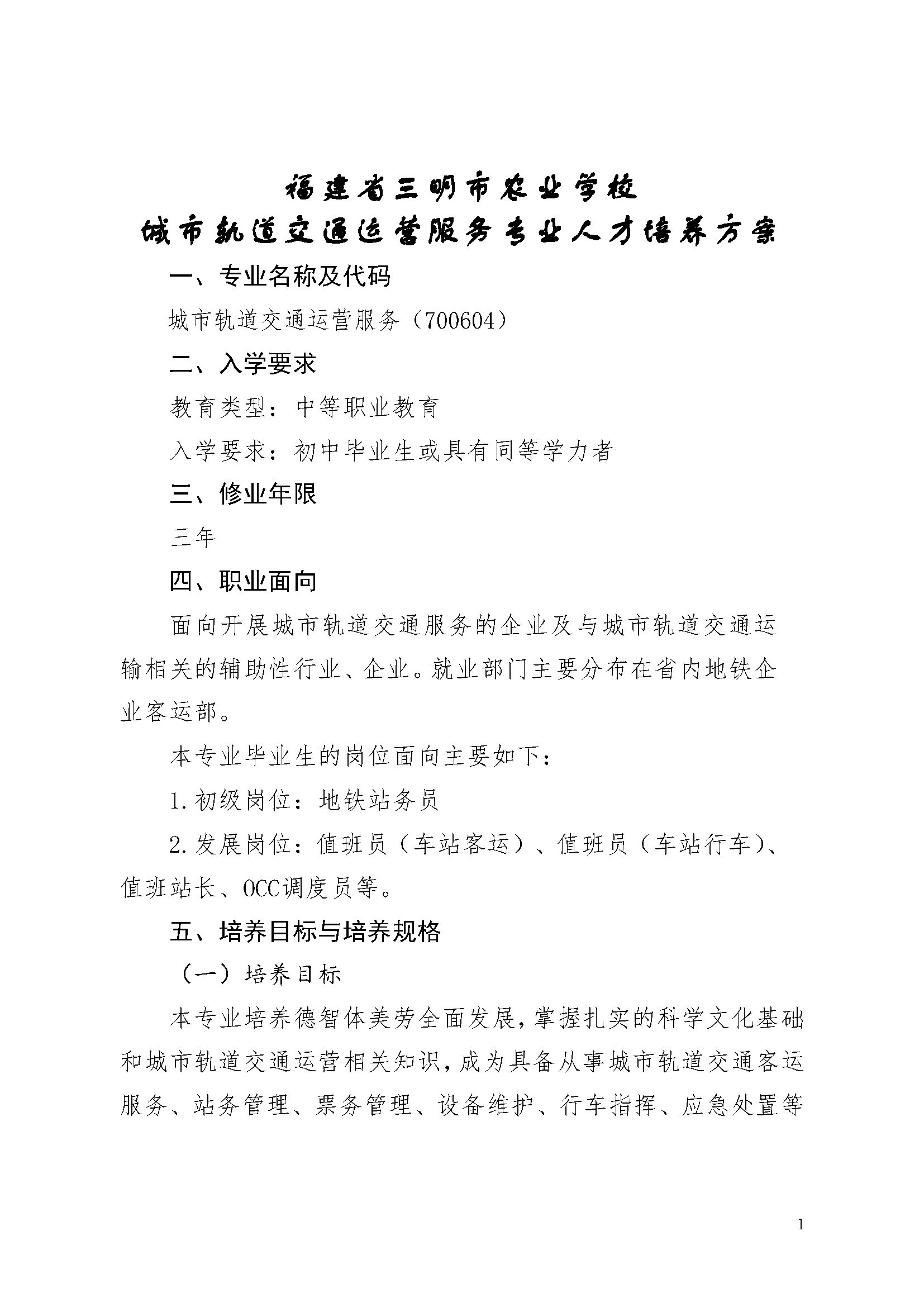 三明市农业学校城市轨道交通运营服务专业人才培养方案(2023)