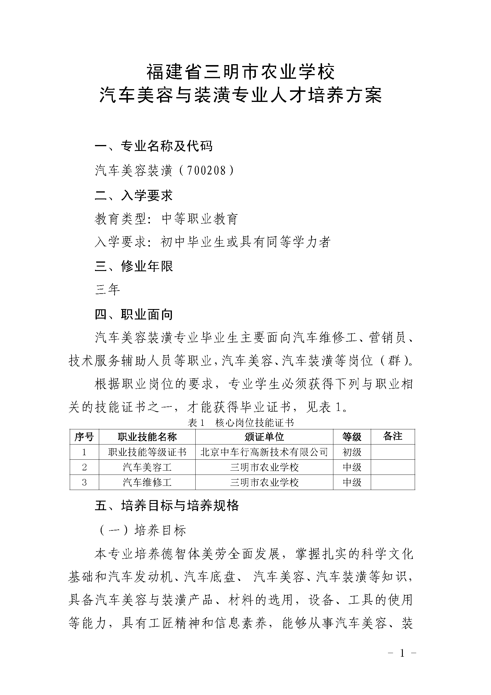 三明市农业学校汽车美容与装潢专业人才培养方案(2023)