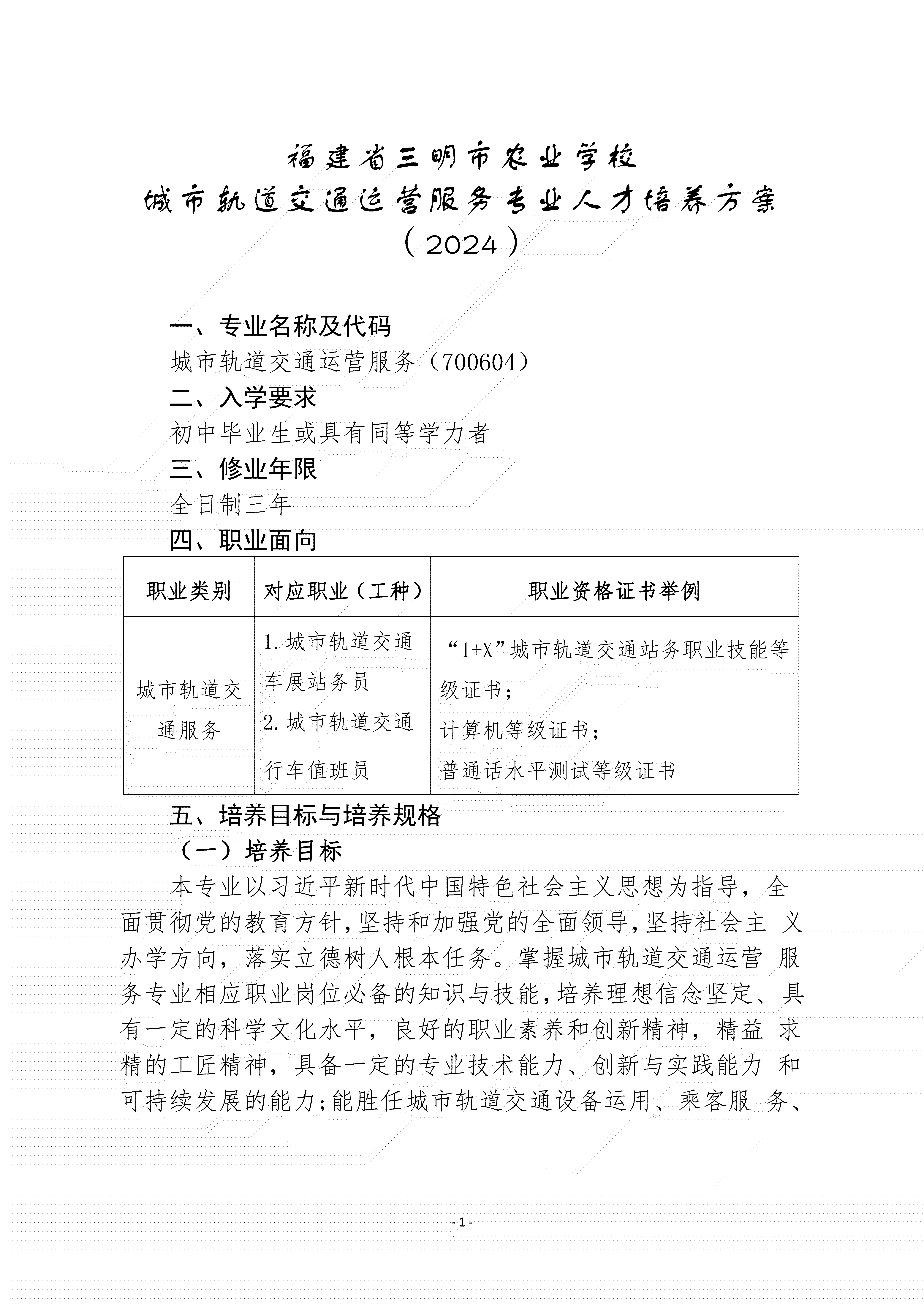 三明市农业学校城轨专业人才培养方案(2024)