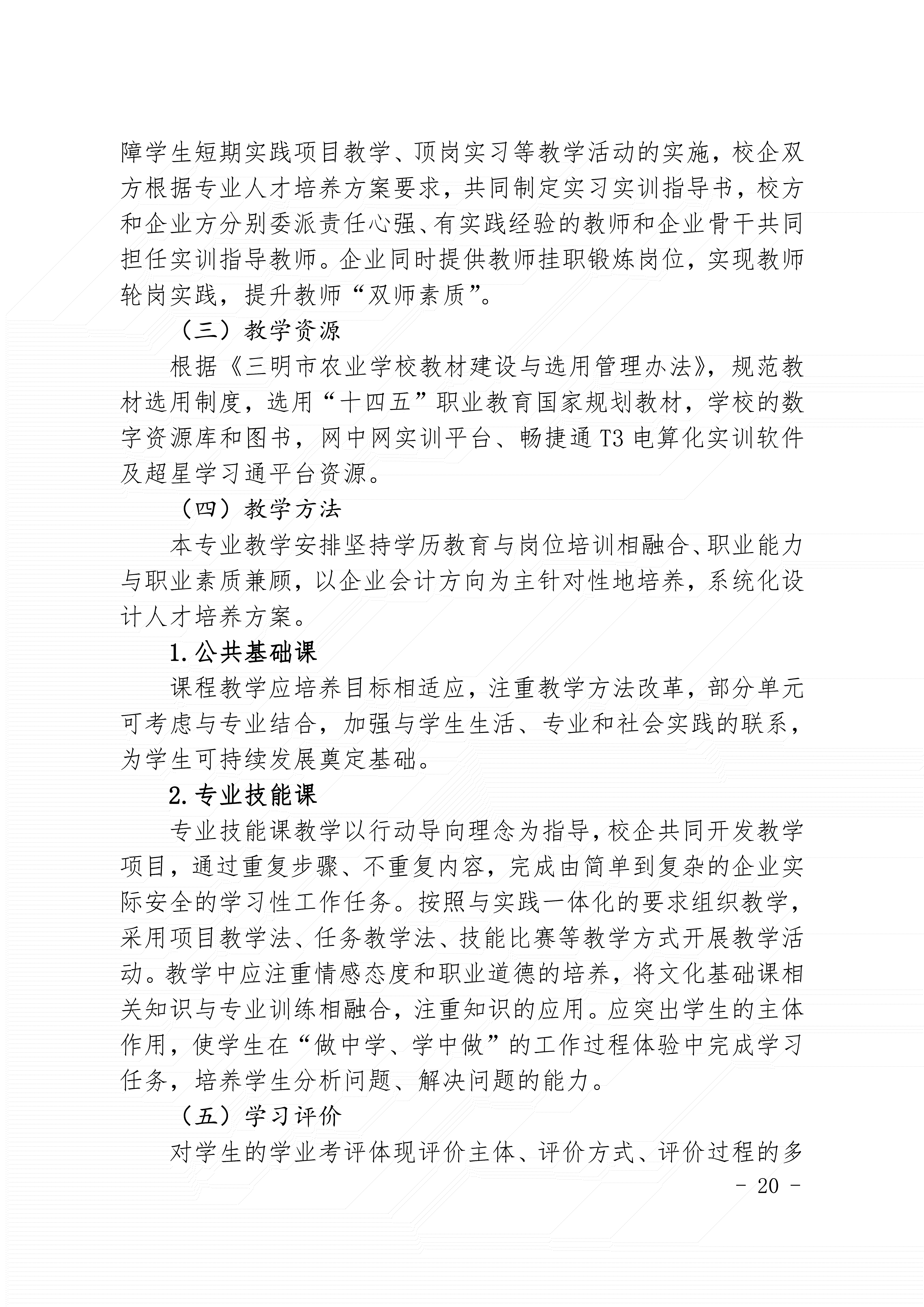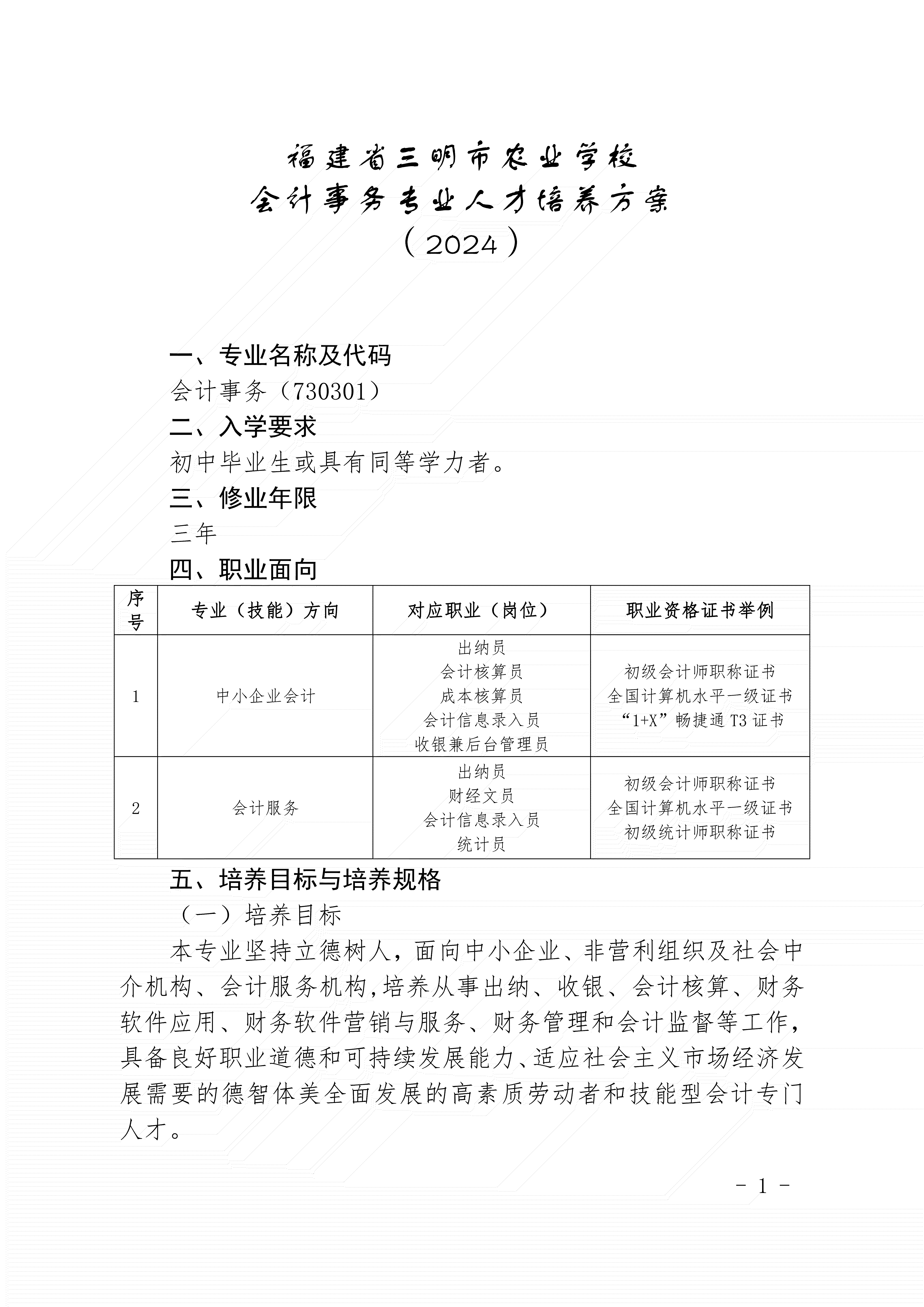 三明市农业学校会计事务专业人才培养方案(2024)