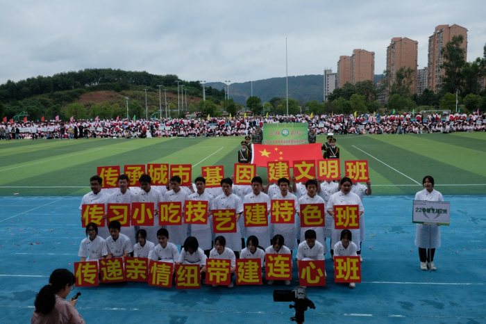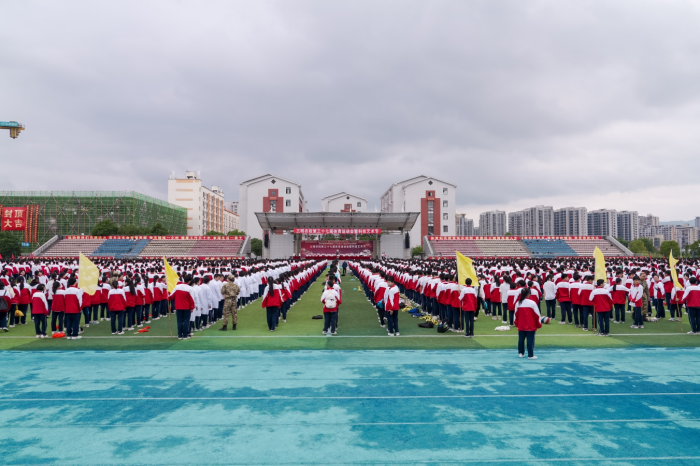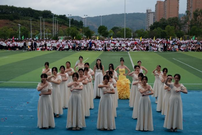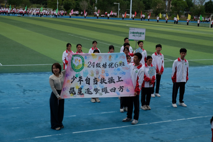 伴随着激昂的旋律,国旗队、校徽队、彩旗队迈着整齐划一的步伐,闪烁着坚定如炬的目光,洋溢着青春活力的光彩,昂首挺胸步入会场。95支由各班级精心编排的方队紧随其后,或手持翻飞彩旗,或舞动绚烂花环,或高举鲜明标语……一场场别出心裁、各具特色的表演仿佛一幅幅徐徐展开的生动画卷,展示着各班级的班级文化、专业特色,展示着农校学子健康自信、积极进取的精神面貌,也展示了学校坚持五育并举、促进学生全面发展的育人成果。