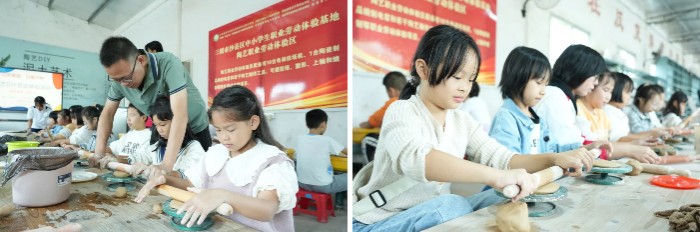 10月26日,30名满怀好奇与期待的小学生踏入了三明农校的“陶艺职业劳动体验区”。在这里,胡少文老师以陶艺为载体,讲述了一段段古老而又生动的故事,从陶艺的历史沿革到制作技艺的细腻讲解,无不引人入胜。孩子们在胡老师的耐心指导下,挑选陶土、熟悉工具、构思造型,一步步将手中的泥巴幻化成了形态各异的陶艺莲花盘。在制作过程中,孩子们的创造力得到了充分释放,每一张专注的脸庞,每一个细致的动作,都映射出他们对美的追求和对劳动的尊重。