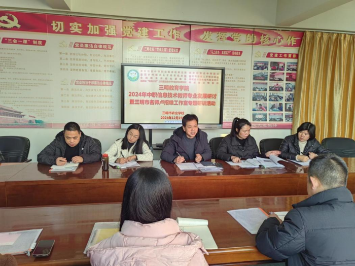 2024年12月20日,由三明市教育学院主办、三明市农业学校承办的三明市中职学校信息技术教师专业发展研讨暨三明市名师卢招雄工作室研修活动圆满落幕。此次活动内容丰富、形式多样,充分发挥卢招雄名师工作室的引领作用,进一步增强中职学校信息技术教师的教学技能,并促进教师间的交流与合作,共同推动三明市中职信息技术教育的蓬勃发展。
