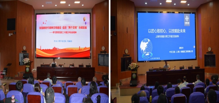 全体教职工在报告厅开展相关学习