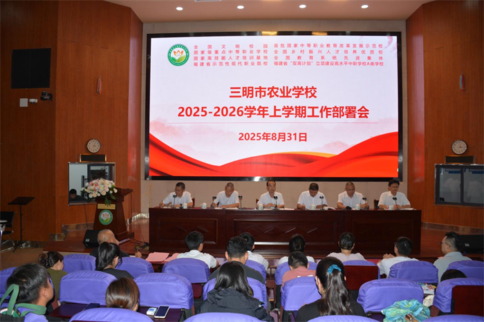 8月31日,三明市农业学校召开全体教职工大会,对新学期工作进行全面部署。会议由党委书记罗世钦主持,全校教职工齐聚一堂,共同谋划新学期的发展蓝图。